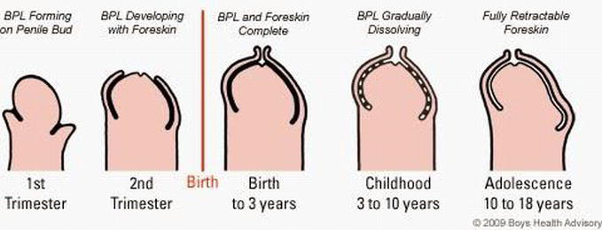 随着孩子年龄的增加,包皮口会逐渐自行松解,包皮也自然会与阴茎头分离。在3到10岁,会有越来越多的孩子能够将包皮翻开。